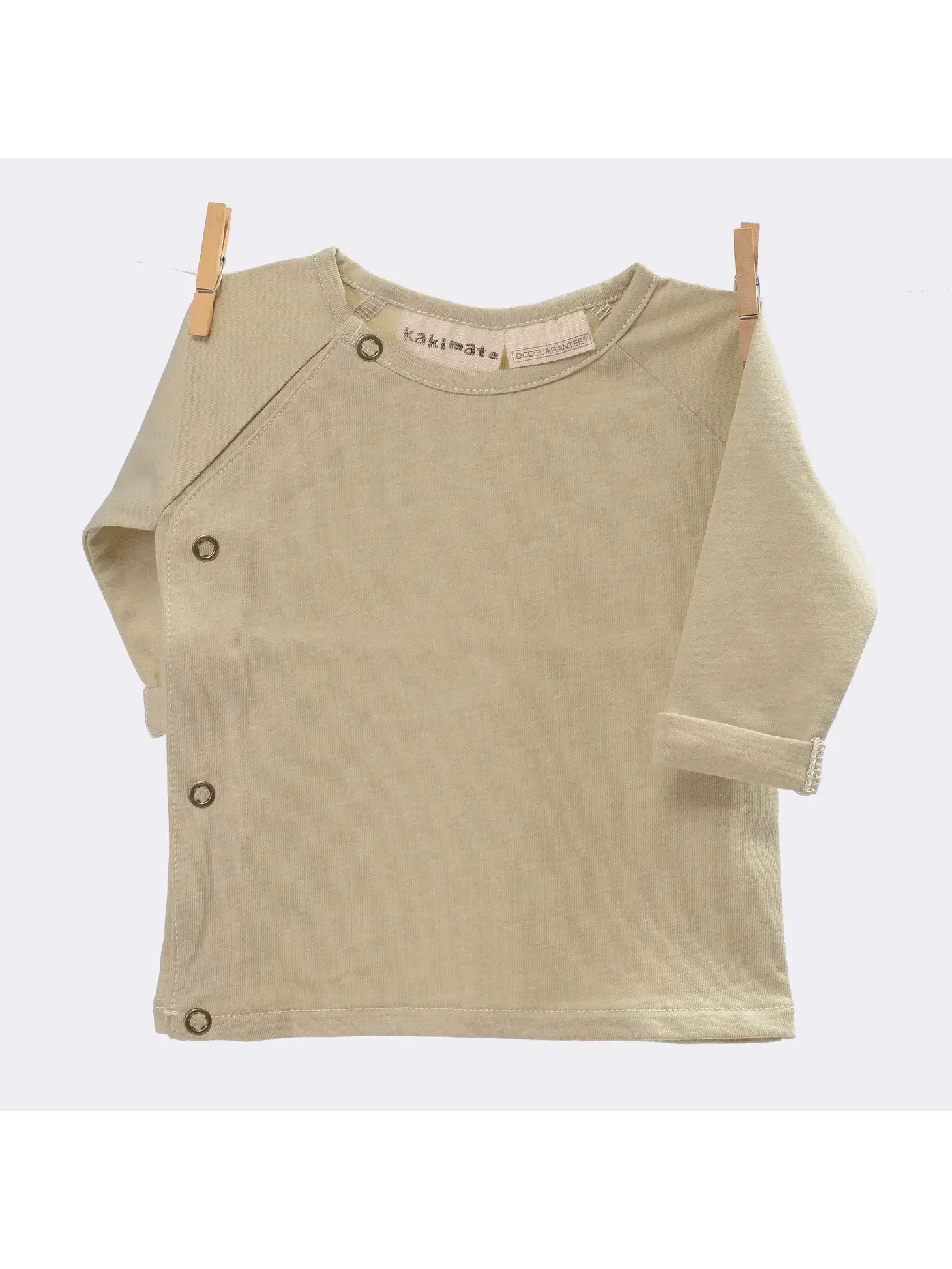 Fijne trui van biologisch katoen met lange mouwen. Gekruiste drukknoopsluiting op de pas. De ecru kleur van het kledingstuk is de kleur van katoen zelf, het heeft geen kleurstoffen of behandelingen. MATERIALEN 100% biologisch katoen (GOTS) Sluitingen: Nikkelvrij