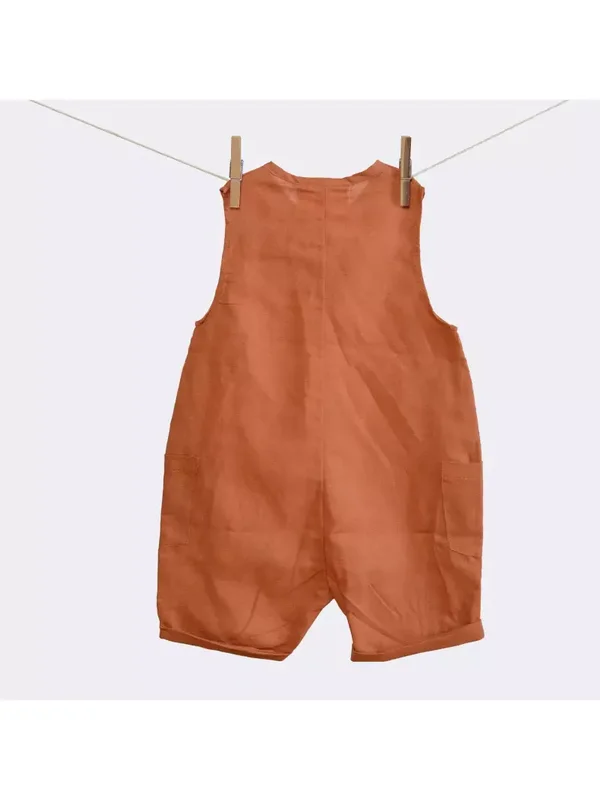 Mouwloze overall met korte ronde hals en knopen aan de voorkant van gerecycled katoen. De kleikleur geeft het een retro en actuele look. MATERIALEN 55% natuurlijk linnen 45% biologisch katoen
