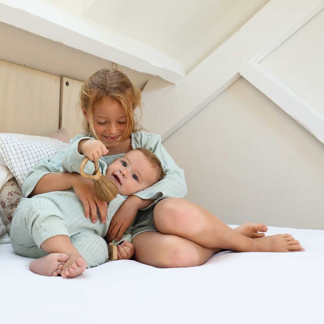 Prachtige opengewerkte pointelle gebreide pyjama van Lililotte Paris. Perfect voor alle baby's, meisjes of jongens, met zijn mooie ronde hals. Zeer praktisch dankzij de drukknoopsluiting aan de achterkant. Zoals gebruikelijk bij Lililotte is het van 100% GOTS gecertificeerd biologisch katoen.