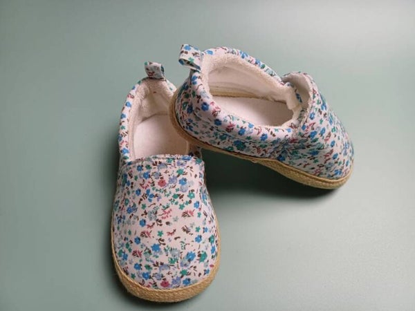 Fleurige meisjes babyschoenen van katoen. Met anti slip zooltjes.
